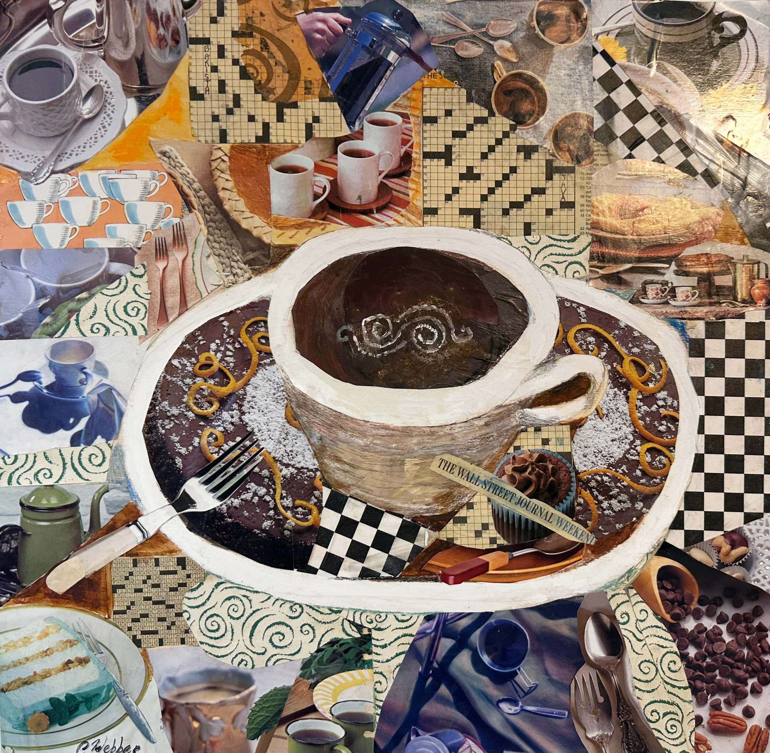 Candy Webber is an experimental artist who works mostly in collage. She uses all kinds of media, from homemade paper and magazines to stamped coffee filters and rice paper, and even failed watercolor paintings, to create amazing collages.
